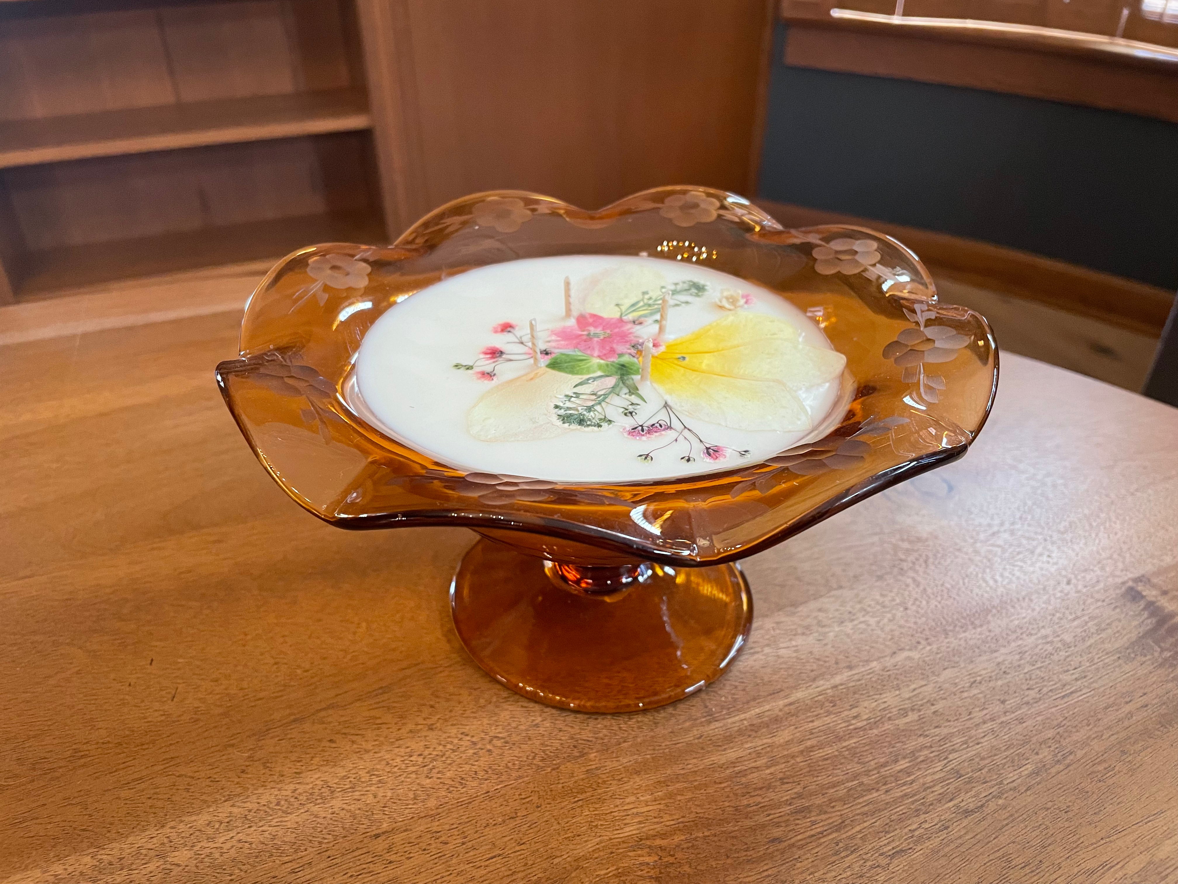 Ciao bel Fiore Amber Etched Edge Centerpiece in the Flowering Sandalwood scent, 16 fl oz