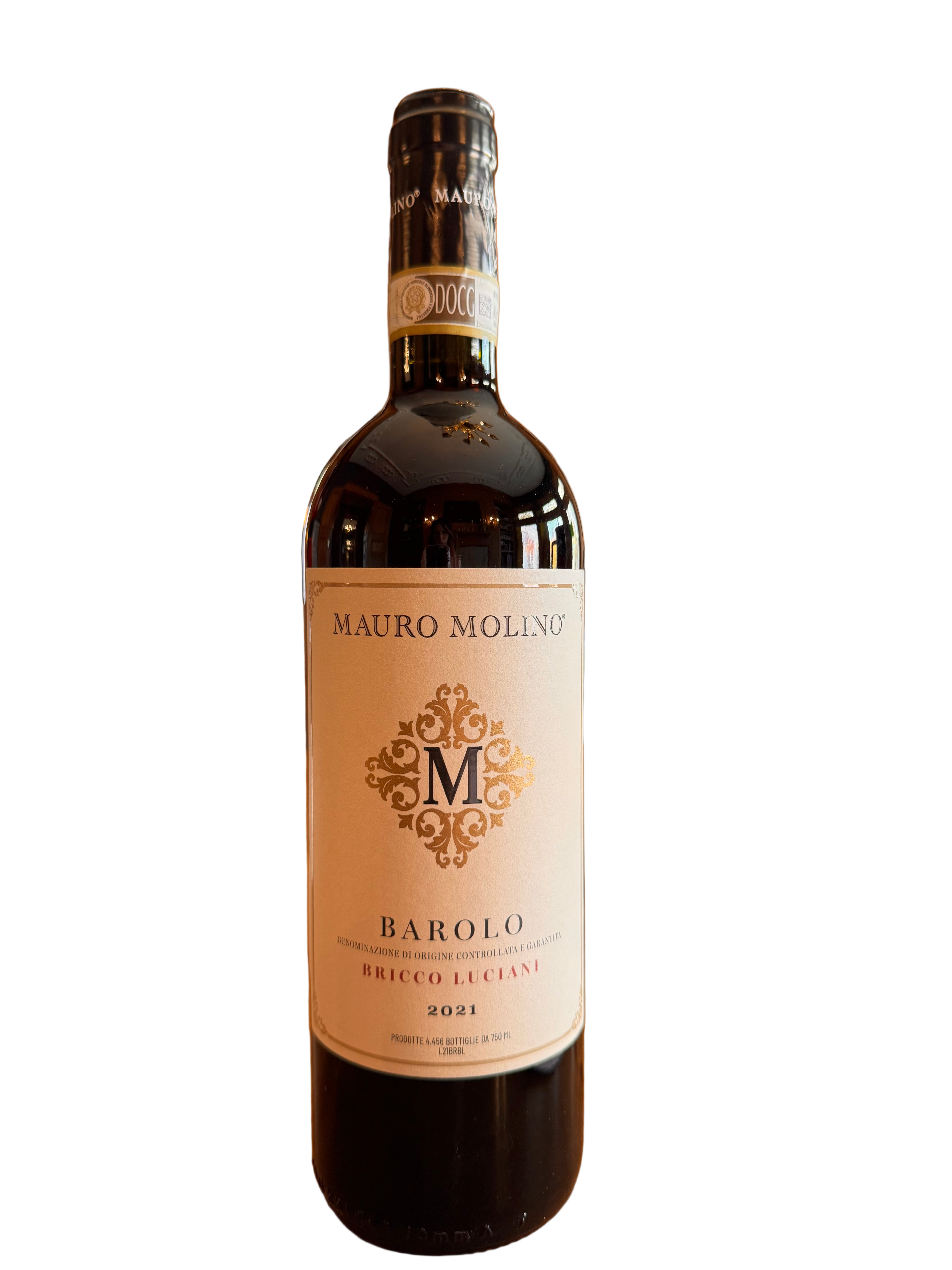Mauro Molino Barolo Bricco Luciani 2021 is an elegant, vineyard-specific Barolo from La Morra, showing red cherry, rose, and mineral notes. Silky and refined with fine tannins and bright acidity, it balances power and grace. Aged in French oak, it’s a poised and polished expression of Nebbiolo with excellent aging potential.